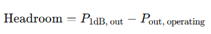 For the headroom, we considered the difference between the cascaded P1dB of the chain and the expected output power. Headroom represents the “safety margin” between the signal operating level and the onset of compression or distortion, ensuring linearity and robust performance under dynamic signal conditions.