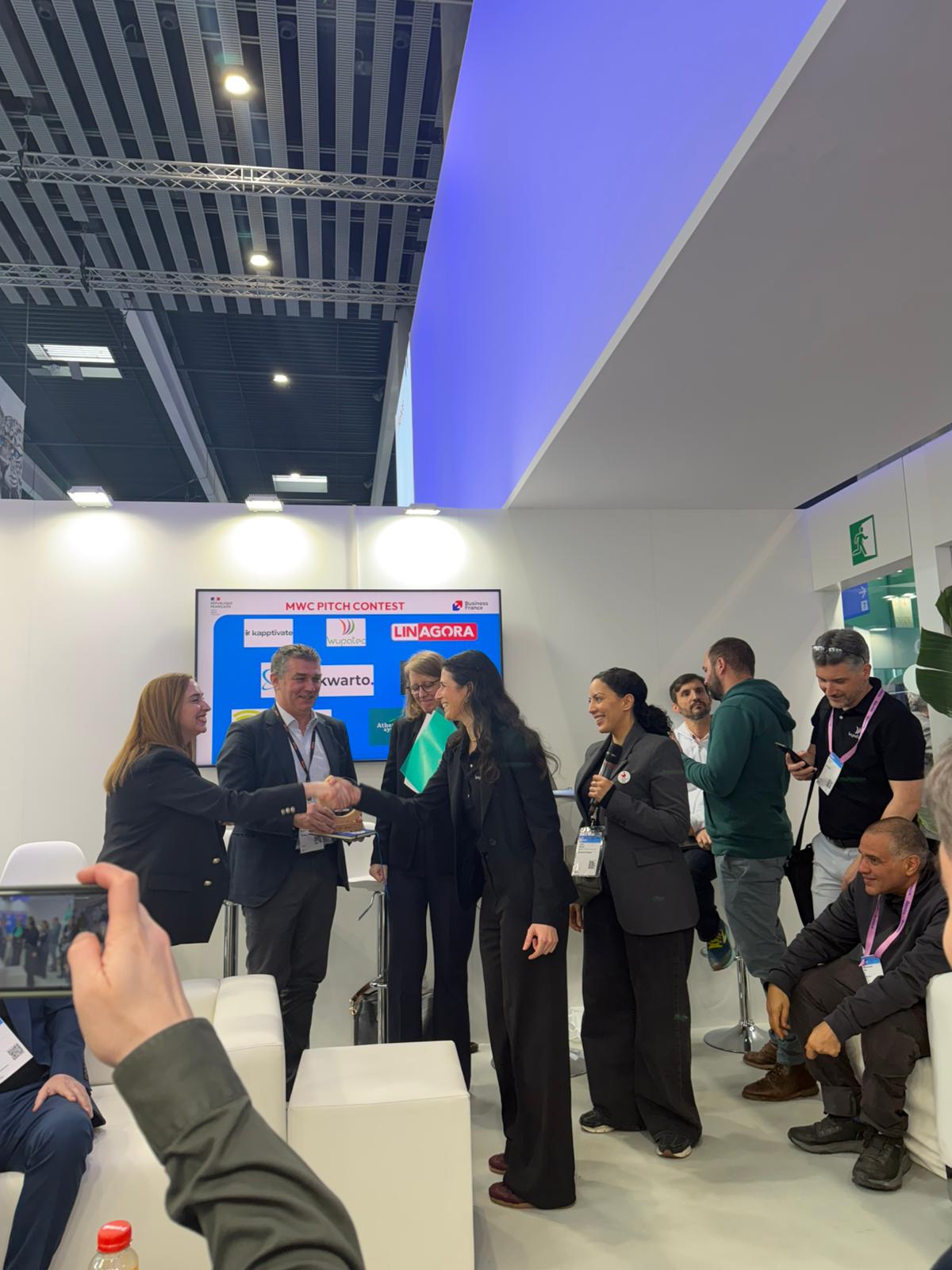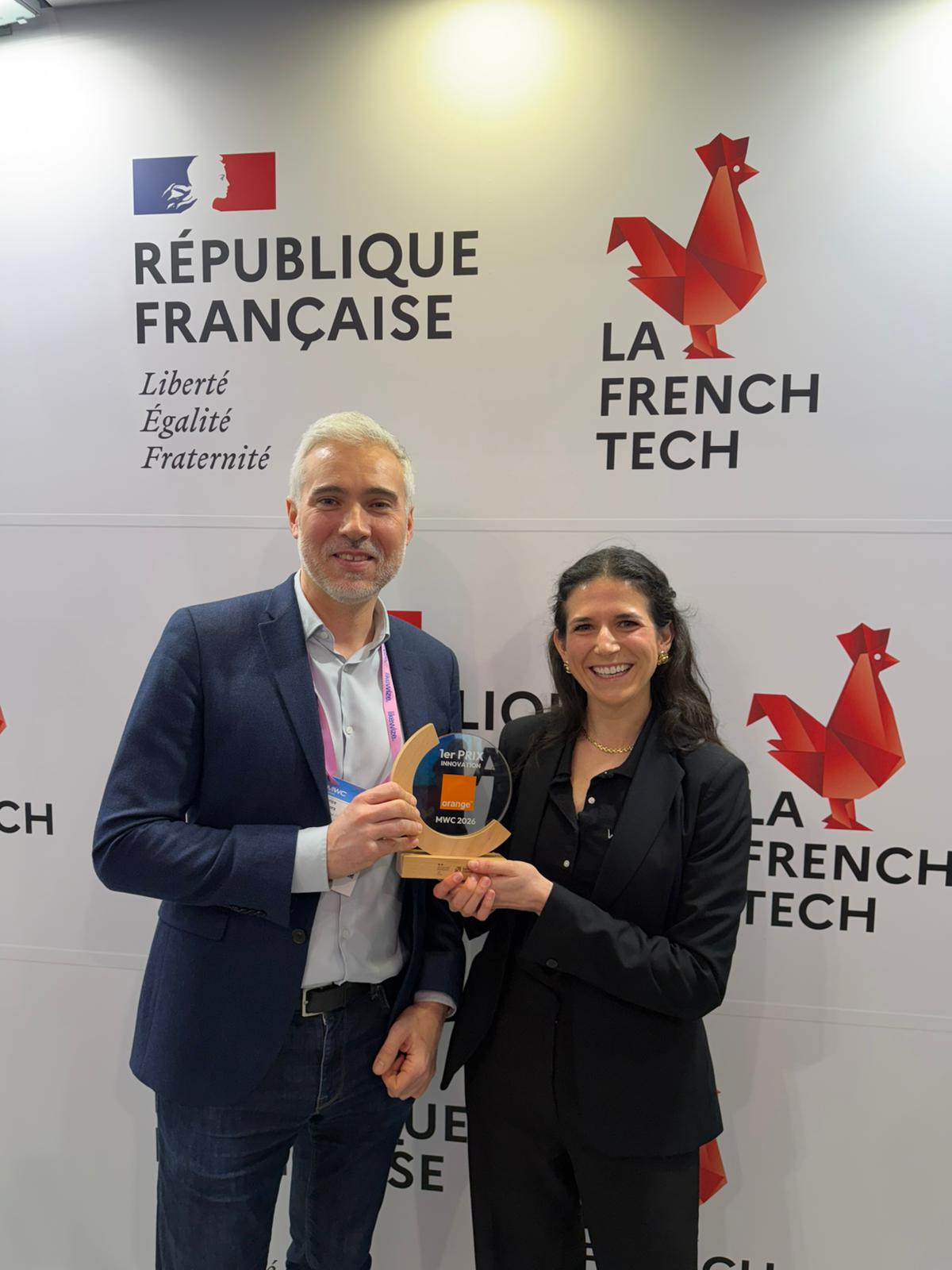 On that Wednesday, Irene participated in the MWC Innovation Pitch Contest and won the 2026 edition. She presented our latest product, the FR3 extension board, as a technical bridge from 5G to 6G. The jury included Hervé Naudin, from Orange Innovation, and Agnès Le Meil, General Delegate of InfraNum. In charge of the contest presentation and coordination was Fadwa Belhadj from Business France (responsible for strategic partnership & global account manager at Business France).
